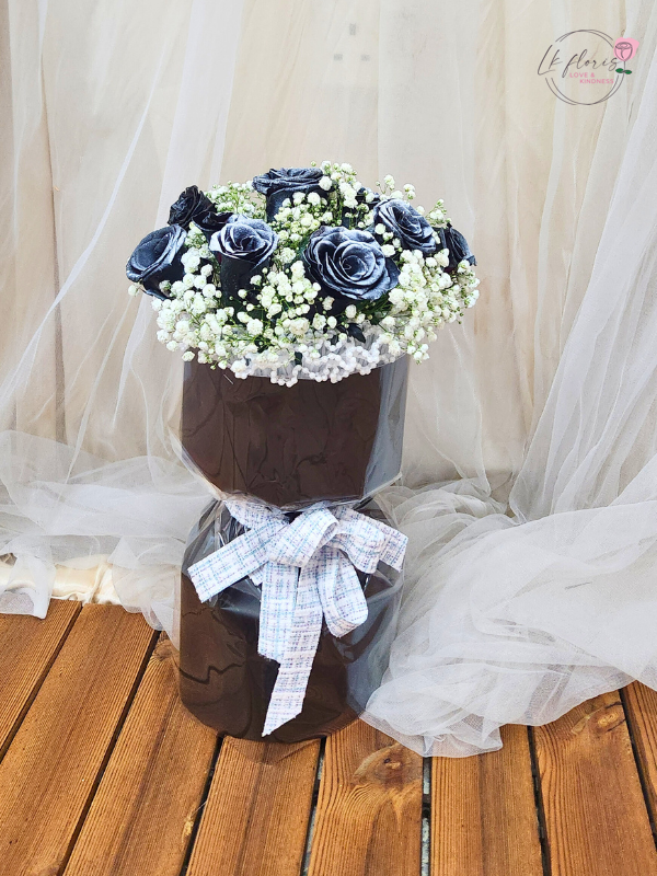 10stalks of Black and White Rose with baby breath ..... that stands out from the rest